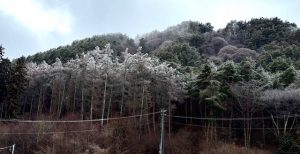 過冷却の雨滴が地表に到達し、枝葉や電線などに付着しますが、その付着した物体が0℃以下であれば、雨滴が凍って雨氷が生じると言われているんだそうです。